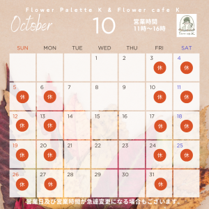 Flower palette K & Flower cafe K 愛知県一宮市相生1-7-1 エスポワールヴァン203 《アクセス》尾張一宮の駅よりバス停印田まで約7分、印田バス停より徒歩7分 ※駐車場完備、予約制